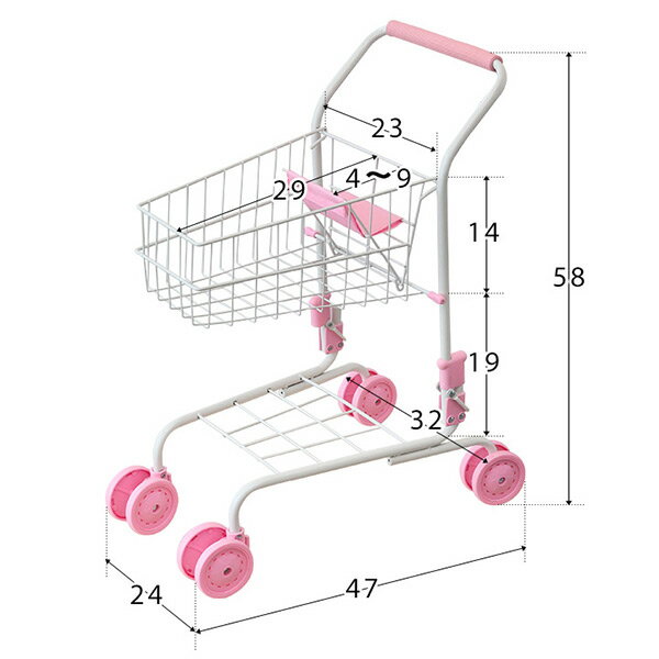 ままごと ショッピングカート※子供用 商 品 詳 細 サイズ (約)幅32cm×奥行き47cm×高さ58cm 材質 スチール、EVA、布(ポリエステル) 重量 (約)1.4kg 対象年齢 3歳以上 特記事項 ※こちらの商品はお客様組み立てとなります。