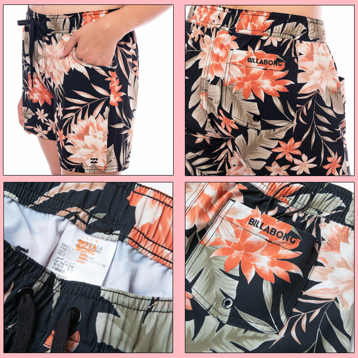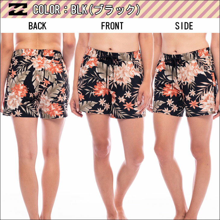 BILLABONG レディース サーフトランクス 今シーズンの水着柄を全面にプリントした、水着の上に着用するミドル丈のサーフトランクス。