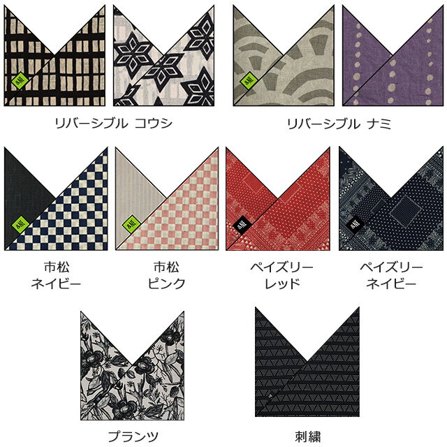 リバーシブル、市松柄、ペイズリーなど、バリエーションも豊富なので、年齢問わずあらゆるシーンでお使いいただけます。